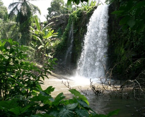 Trekking avec guide à travers la forêt tropicale du parc naturel de Ôbo pour finalement atteindre Lagoa Amélia, ancien cratère situé dans un endroit privilégié de l'île de Sao Tomé